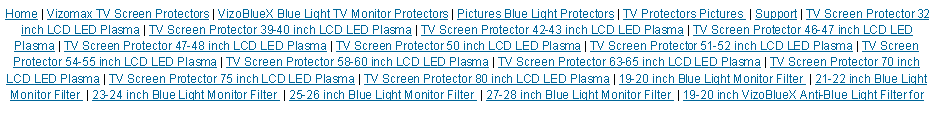 Vizomax TV screen protector has the following applications: LCD TV screen protector, LED TV screen protector, Plasma TV screen protector, flat screen TV screen protector. Our premium Plasma / LCD / LED TV Screen Protector blocks 96% to 99% of the harmful UV radiation. Our antiglare LED TV screen protector, LCD TV Screen Protectors and plasma TV screen protector block over 99% of harmful UV emissions. Anti-scratch on our premium and antiglare TV screen protectors prevents easy scratching from abuse and children activities. Our TV screen protectors have increased 1/4 inch thickness that both ensures sufficient screen protection and prevents the Vizomax TV screen protector from flexing in front of the TV display. Vizomax TV screen protectors are manufactured to fit Sony, Samsung, LG, Sharp, Sanyo, Vizio, Panasonic, Philips, RCA, Toshiba, Mitsubishi, Emerson, Pioneer, Hitachi, Insignia, Magnavox, Element, Haier, Sylvania, Viore, Seiki, AOC, Proscan, Apex, Sceptre, Sceptre, Mitsubishi .. and virtually all other LED, LCD and Plasma TV’s with 26, 32, 37, 40, 42, 46, 47, 50, 52, 55, 60 and 65 inch screen diagonal. © Copyright 2009 VizomaxTM. All rights Reserved. Limited Liability; Contact us:Sales@vizomax.com |