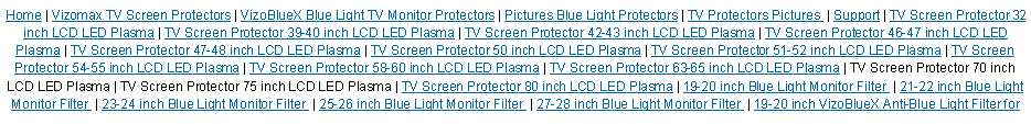 Vizomax TV screen protector has the following applications: LCD TV screen protector, LED TV screen protector, Plasma TV screen protector, flat screen TV screen protector. Our premium Plasma / LCD / LED TV Screen Protector blocks 96% to 99% of the harmful UV radiation. Our antiglare LED TV screen protector, LCD TV Screen Protectors and plasma TV screen protector block over 99% of harmful UV emissions. Anti-scratch on our premium and antiglare TV screen protectors prevents easy scratching from abuse and children activities. Our TV screen protectors have increased 1/4 inch thickness that both ensures sufficient screen protection and prevents the Vizomax TV screen protector from flexing in front of the TV display. Vizomax TV screen protectors are manufactured to fit Sony, Samsung, LG, Sharp, Sanyo, Vizio, Panasonic, Philips, RCA, Toshiba, Mitsubishi, Emerson, Pioneer, Hitachi, Insignia, Magnavox, Element, Haier, Sylvania, Viore, Seiki, AOC, Proscan, Apex, Sceptre, Sceptre, Mitsubishi .. and virtually all other LED, LCD and Plasma TV’s with 26, 32, 37, 40, 42, 46, 47, 50, 52, 55, 60 and 65 inch screen diagonal. © Copyright 2009 VizomaxTM. All rights Reserved. Limited Liability; Contact us:Sales@vizomax.com |